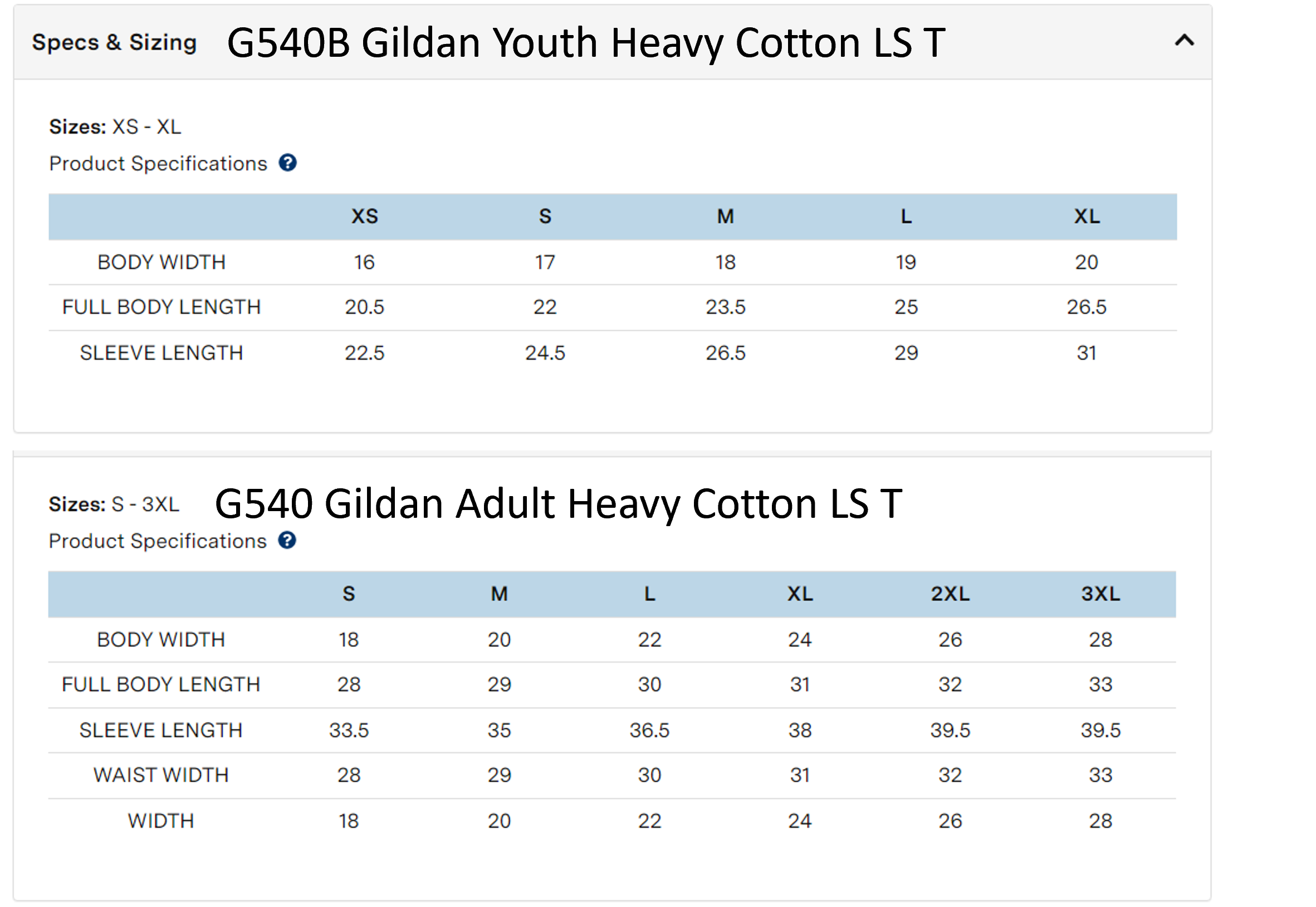 Click to view sizing chart.